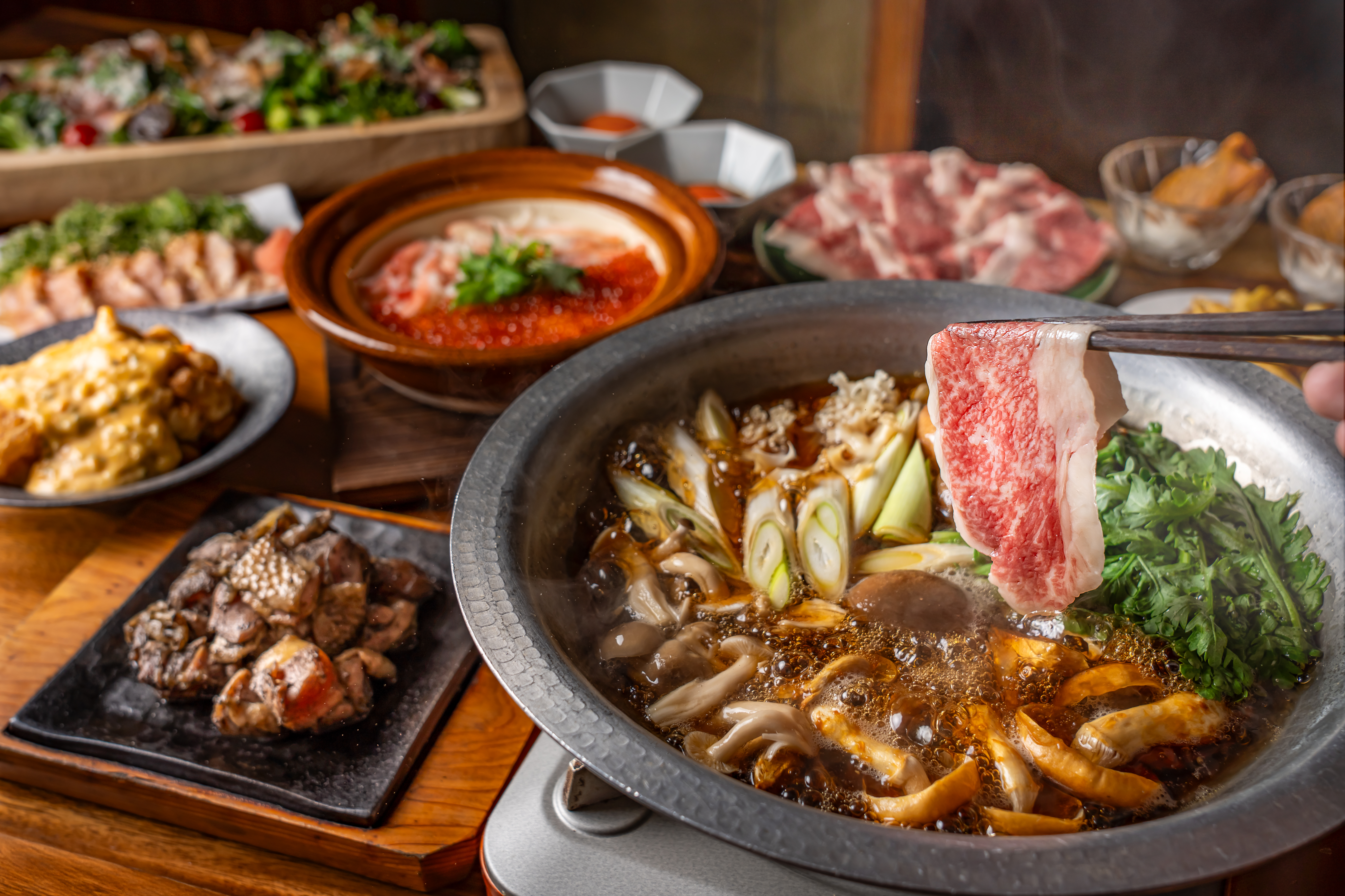 【忘年会プラン】ハレの日や会食にぴったりの全8品和牛しゃぶすきプラン 6,000円(税込)